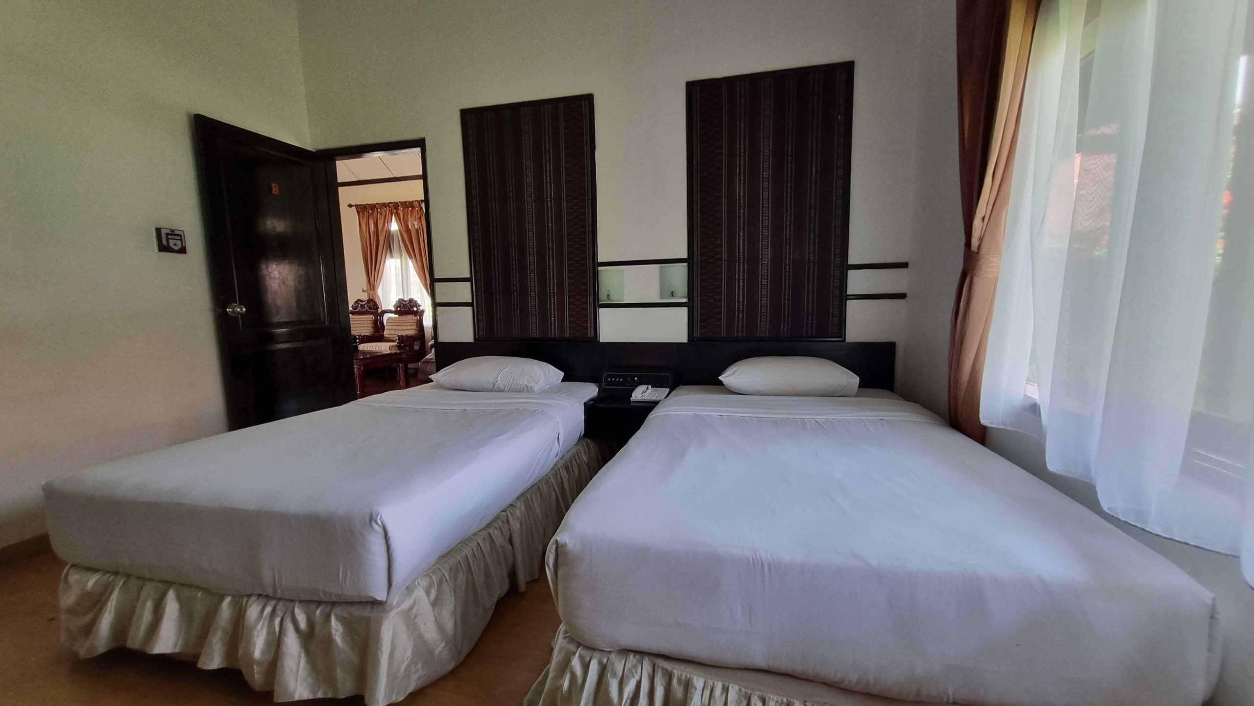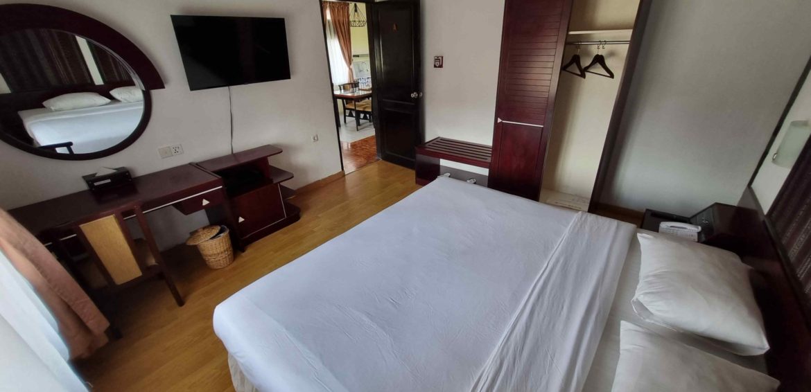 The Family Suite is a charming cottage-style retreat set apart from the main building, providing a warm and inviting atmosphere. It features a cozy porch, a mini garden, a car porch, and a backyard with a park-style gazebo overlooking the swimming pool. Inside, you’ll find two comfortable bedrooms—one with a queen-size bed and the other with twin beds—each with its own en-suite bathroom and bathtub. The suite also includes a spacious living area and a fully equipped kitchen with a refrigerator, dining table, and wash sink, making it the perfect space for relaxation and family togetherness.